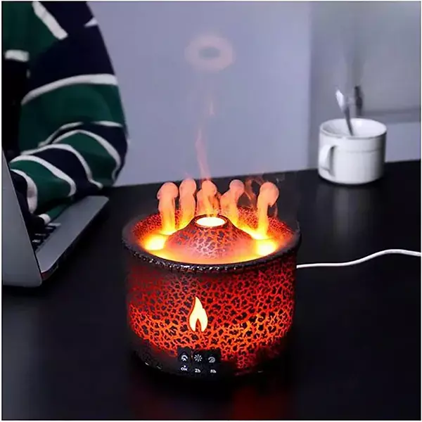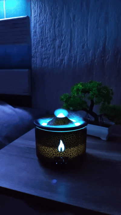 Su efecto volcán con luces LED lo convierte en un elemento decorativo espectacular.